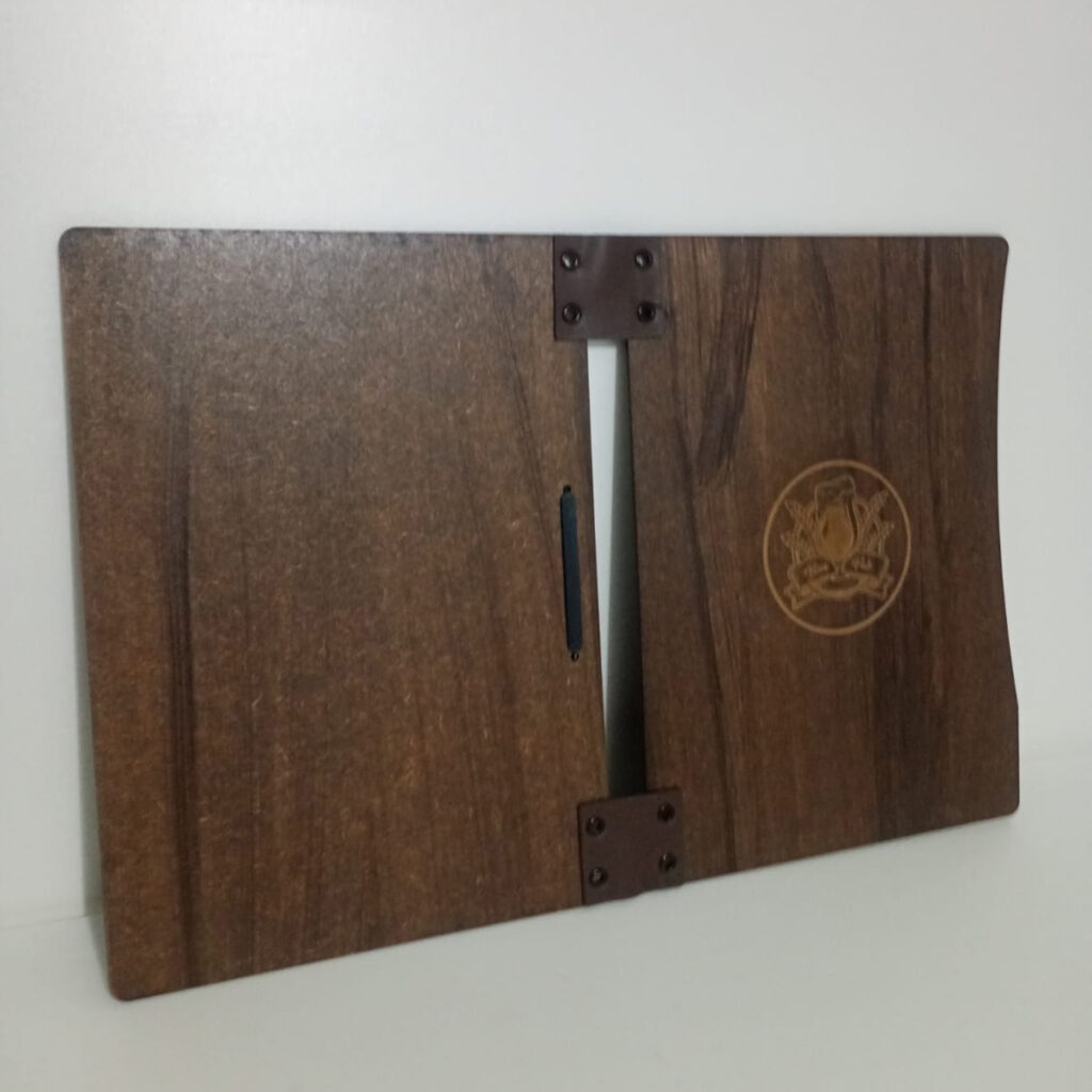 Capas para Cardápios em MDF com Couro Frontal